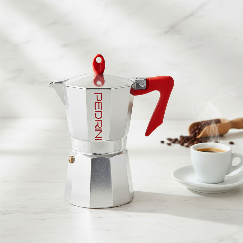 Tipos de cafetera: ExpresoIncluye temporizador: NoFabricante: PedriniOrigen: ItaliaTecnología: Semi automáticaCapacidad de agua: 330 ccMarca: PedriniTipo de cafetera: CafeColor: RojoCódigo universal de producto: 883336090842Impuesto interno: 0 %Condición del ítem: NuevoLínea: KaffettieraColor principal: RojoMaterial: AluminioModelo: BRILLANTATECaracterísticas del producto: Sin vencimientoMateriales de la estructura: AluminioIVA: 21 %Con filtro: Sí