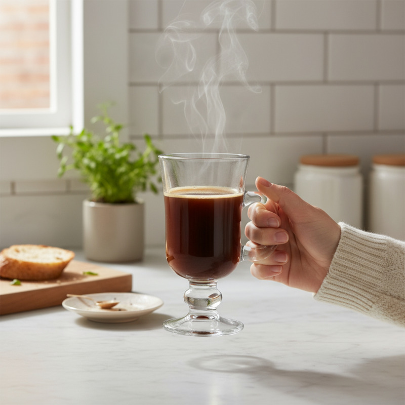 Jarrito para café con manija y pie. Capacidad 225cc.